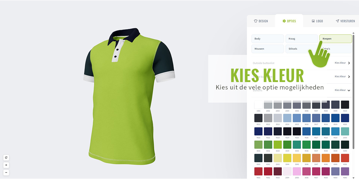 Met de configurator stel jij als dealer bedrijfskleding samen voor je klant. Je bepaalt kleuren per onderdeel,