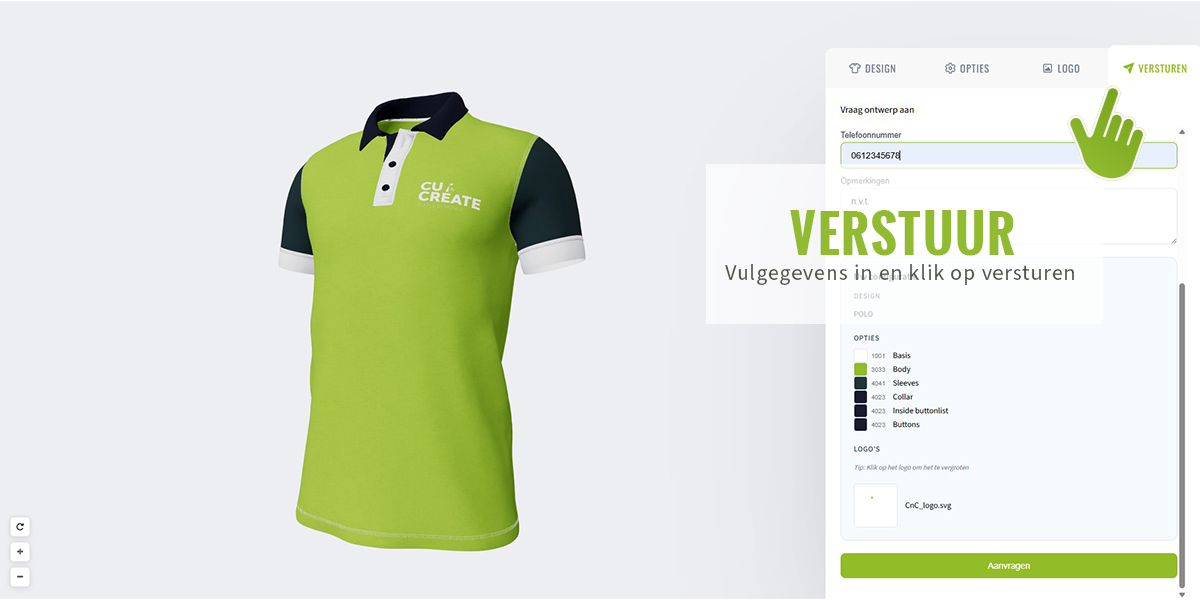 met je klant bedrijfskleding samen te stellen: overzichtelijk, foutloos en direct geschikt voor productie.
